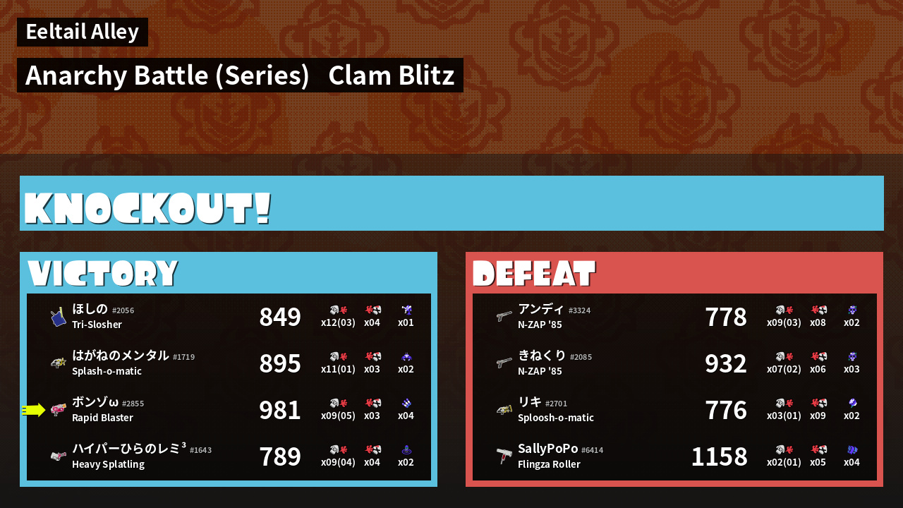 | Mode | Clam Blitz - Anarchy Battle (Series) | ||