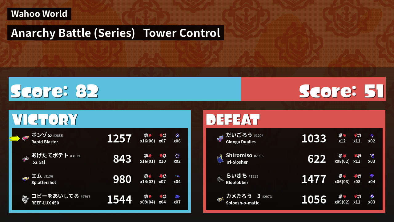 | Medals | #1 Overall Splatter #1 Popular Target #1 Super Jump Spot | ||