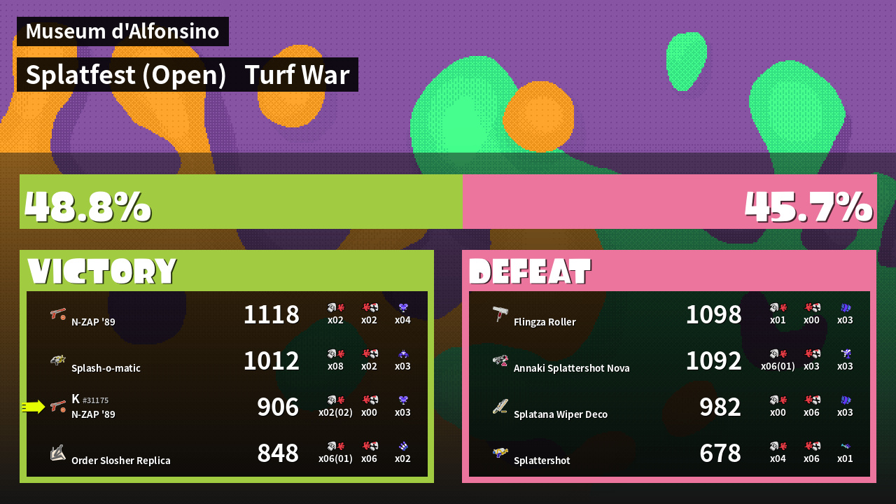 | Medals |  #1 Splat Assister  #1 Ink Consumer  #1 Super Chump User | ||