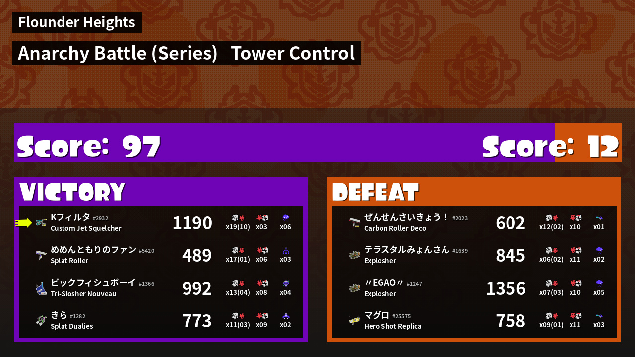 Kills / Deaths | 9 + 10 / 3 > Kill Ratio: 3.00 | ||