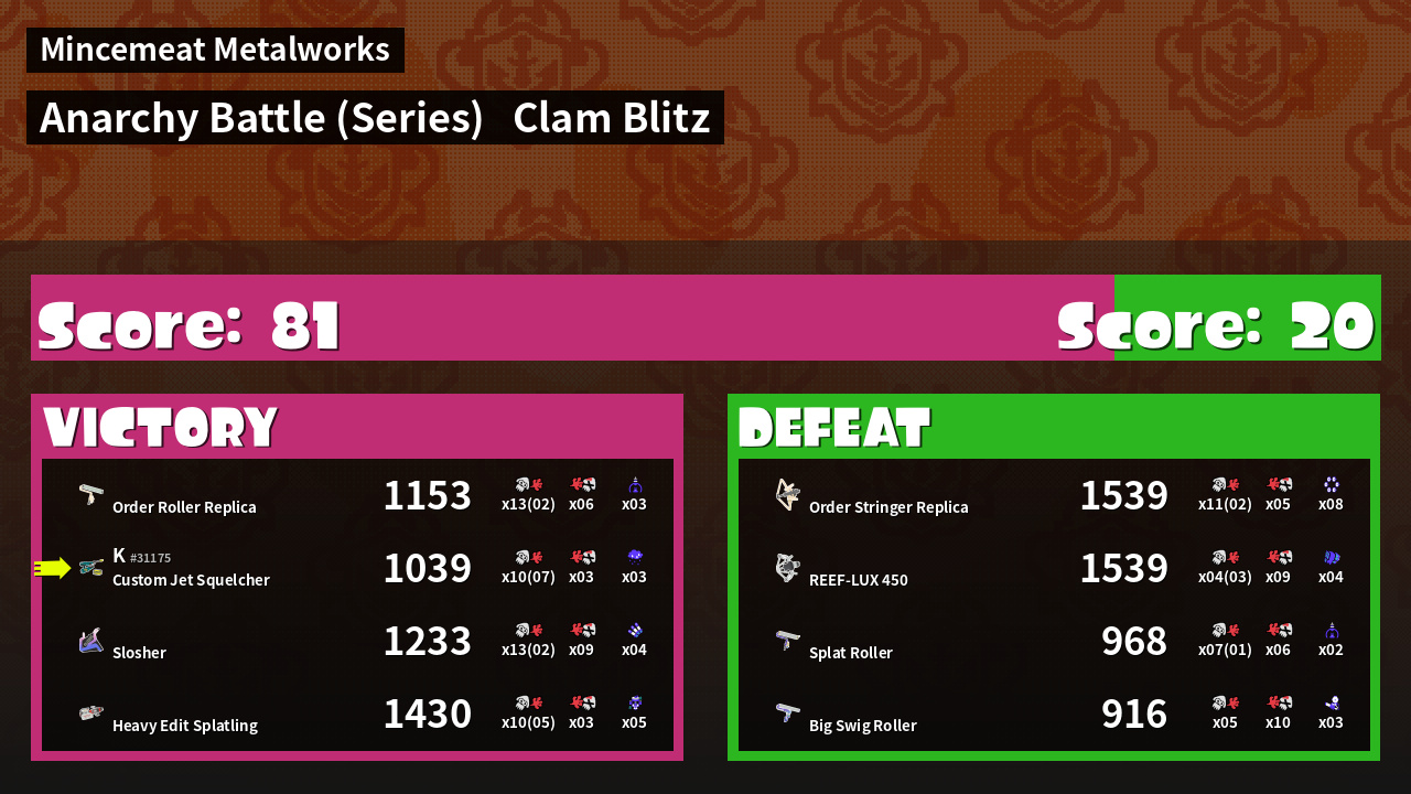| Mode | Clam Blitz - Anarchy Battle (Series) | ||