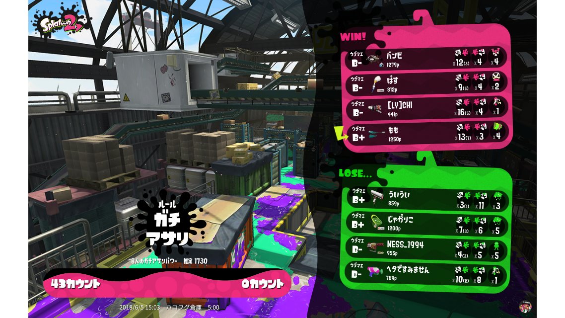 | Name | Weapon | Level | Rank | Inked | k+a/sp | k/d |