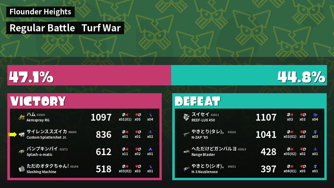 | Mode | Turf War - Regular Battle | ||