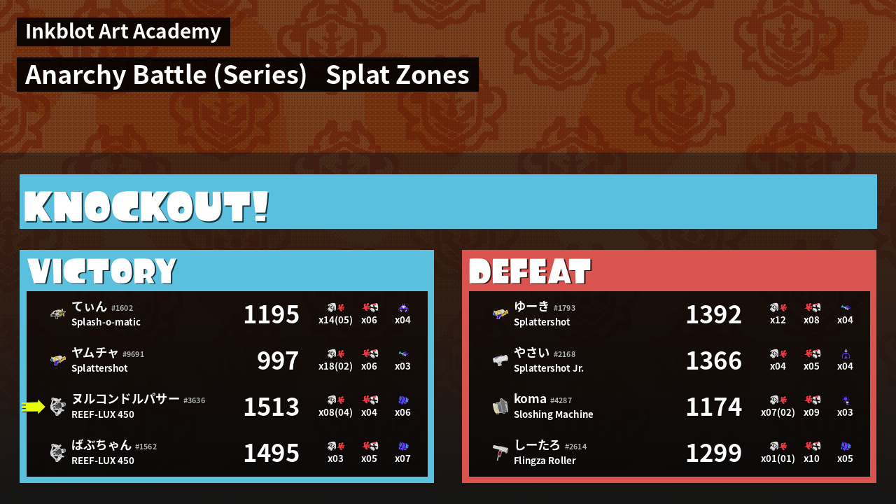| Medals | #1 Splat Zone Inker #1 Turf Inker #1 Damage Taker | ||