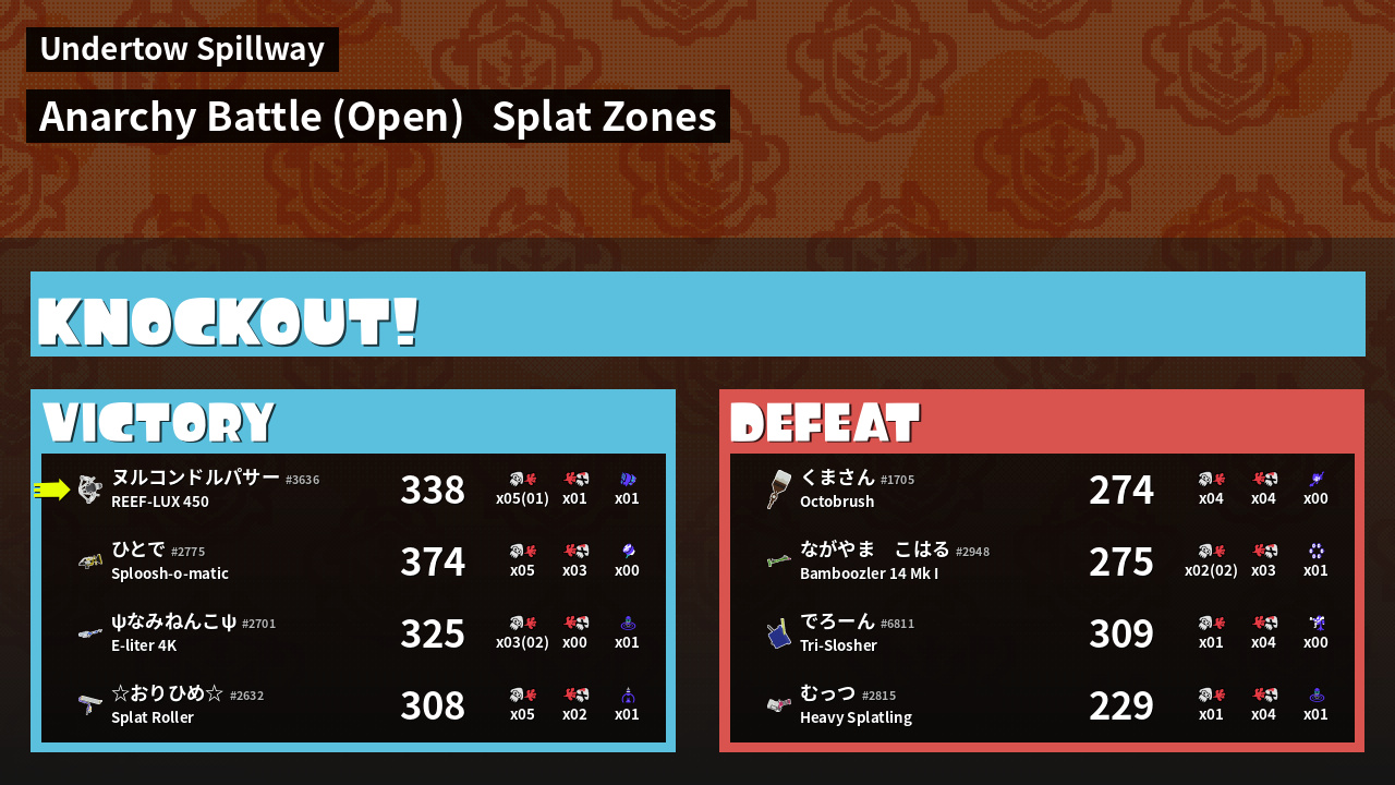 | Mode | Splat Zones - Anarchy Battle (Open) | ||