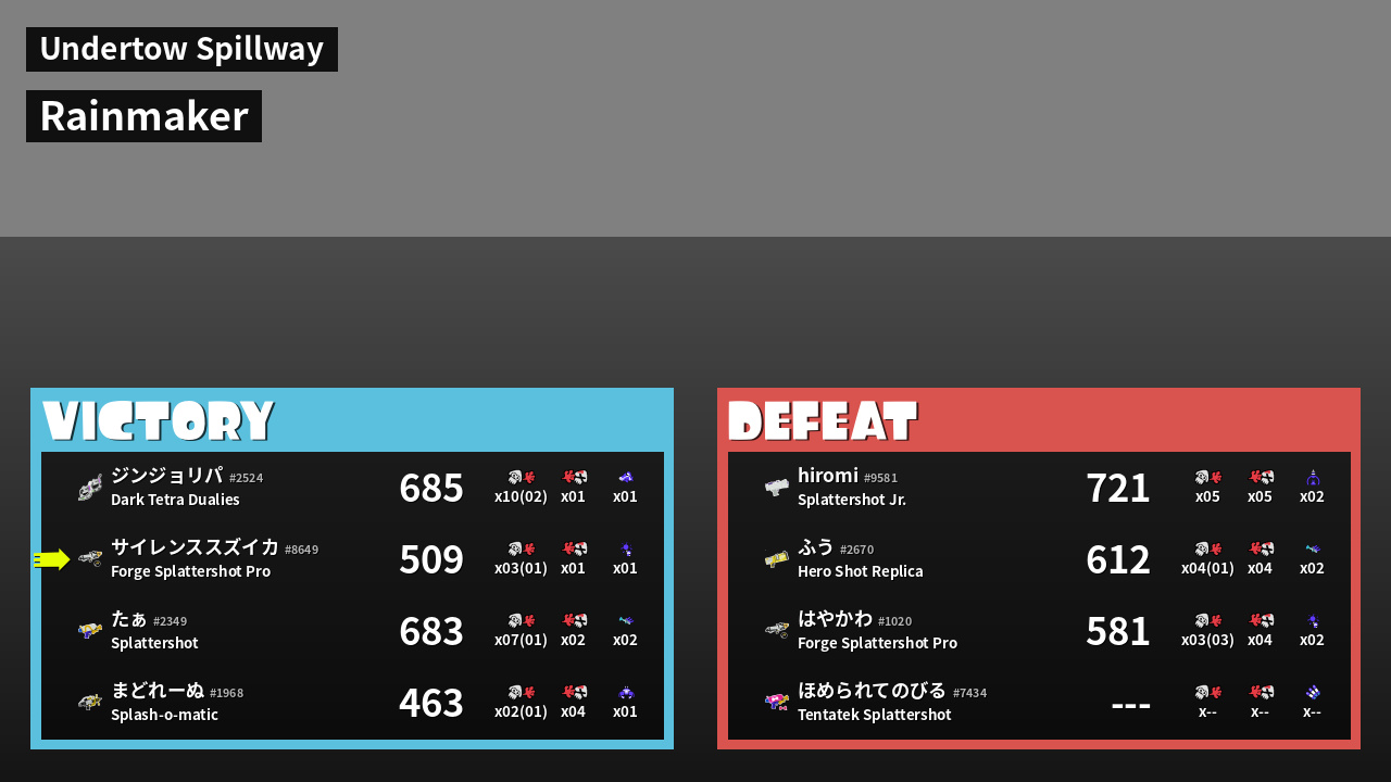| Weapon | Forge Splattershot Pro ( Suction Bomb / Booyah Bomb) | ||