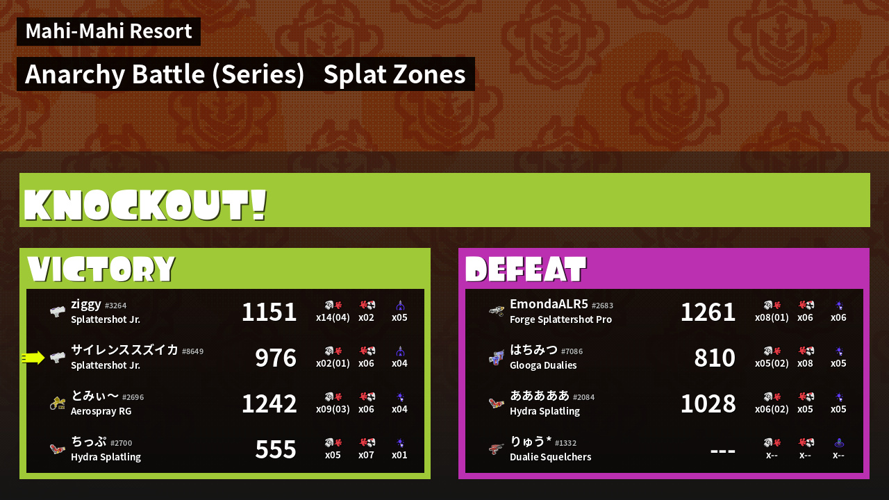 | Mode | Splat Zones - Anarchy Battle (Series) | ||