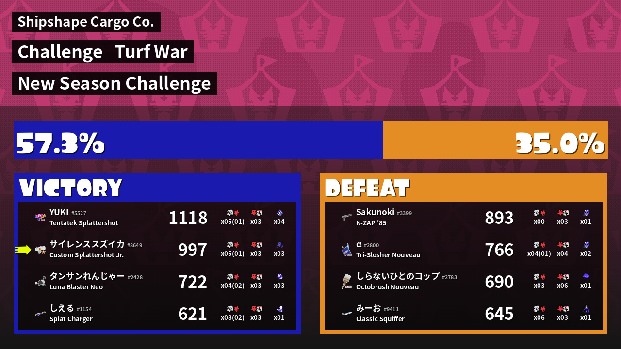 | Medals | #1 Home-Base Inker #1 Wave Breaker User #2 Overall Splatter | ||