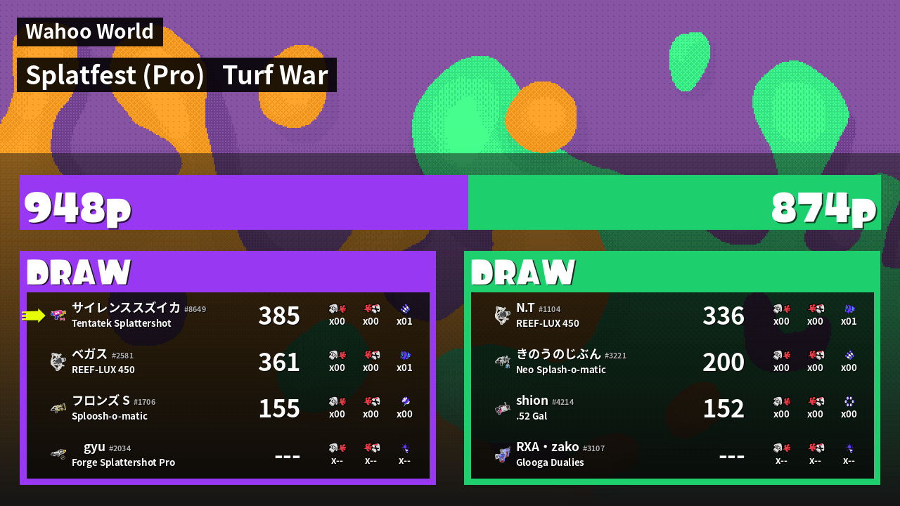 | Mode | Turf War - Splatfest (Pro) | ||