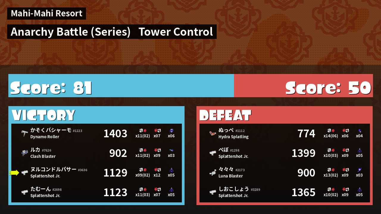 | Mode | Tower Control - Anarchy Battle (Series) | ||