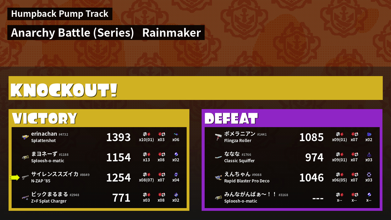 | Medals |  #1 Popular Target  #1 Splat Assister  #1 Damage Taker | ||