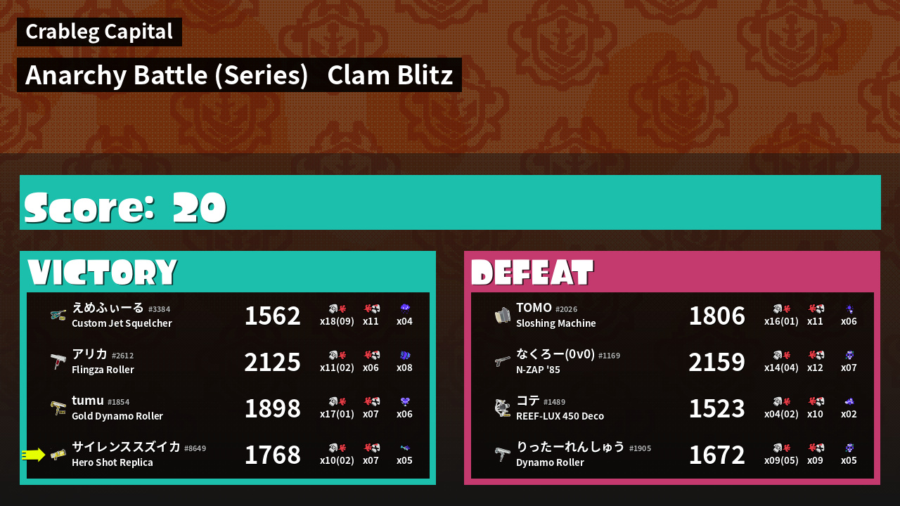 | Mode | Clam Blitz - Anarchy Battle (Series) | ||