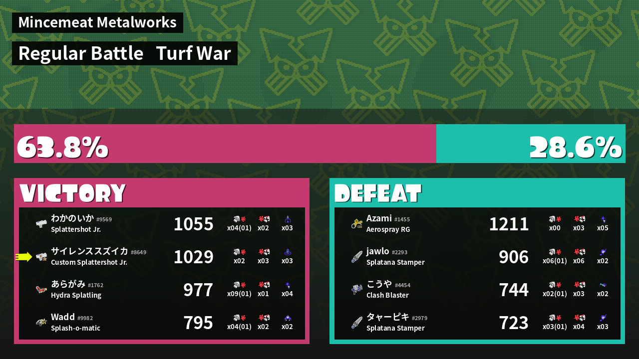 | Medals | #1 Damage Taker #1 Wave Breaker User #2 Turf Inker | ||