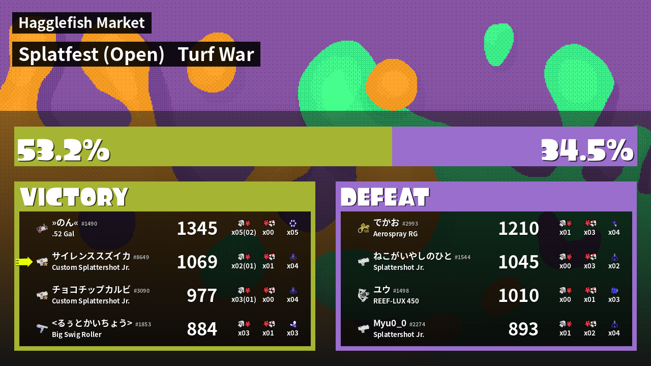 | Medals | #2 Turf Inker #2 Enemy-Base Inker #2 Splat Assister | ||
