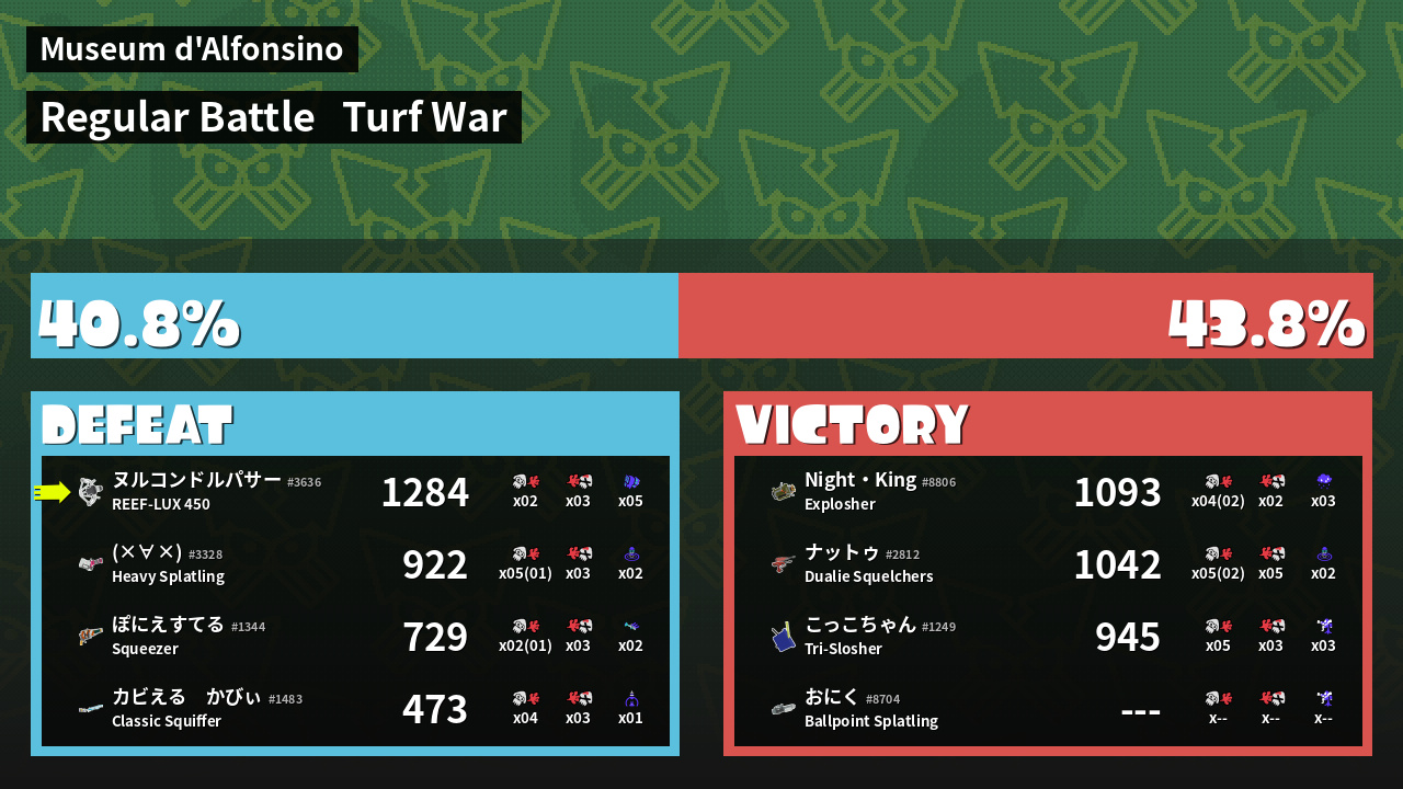 | Name | Weapon | Inked |  k |  d | KR | Sp | |