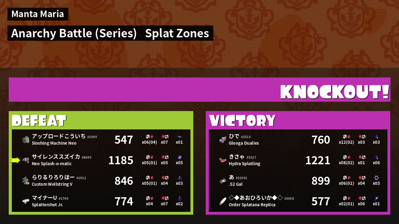| Mode | Splat Zones - Anarchy Battle (Series) | ||