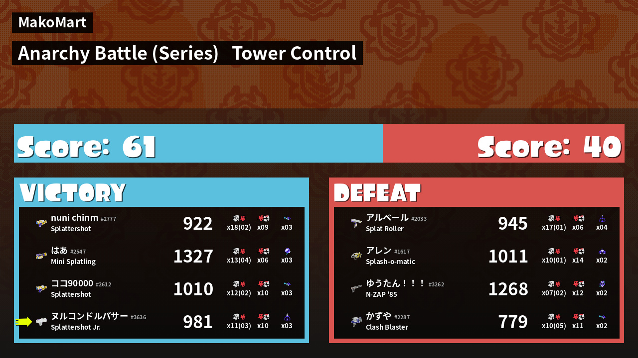 | Mode | Tower Control - Anarchy Battle (Series) | ||