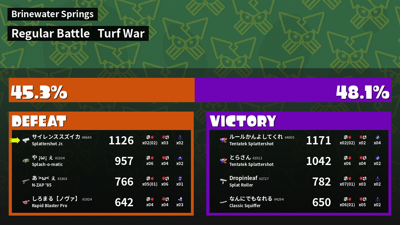 | Mode | Turf War - Regular Battle | ||