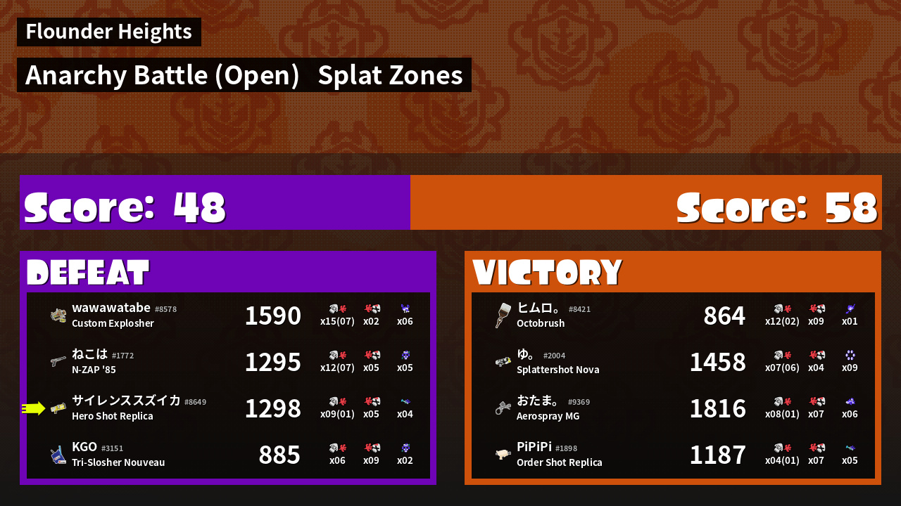 | Mode | Splat Zones - Anarchy Battle (Open) | ||