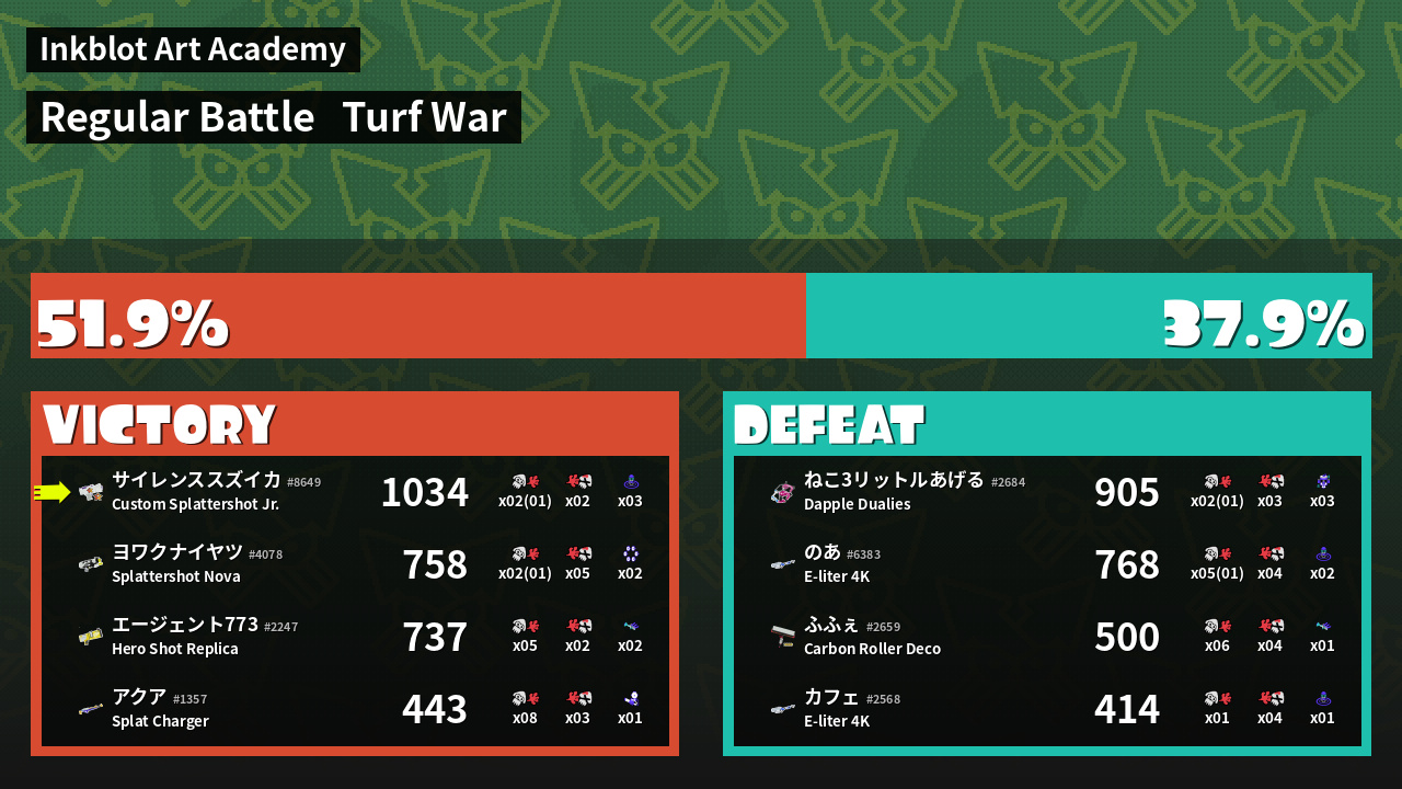 | Medals | #1 Turf Inker #1 Home-Base Inker #1 Enemy-Base Inker | ||