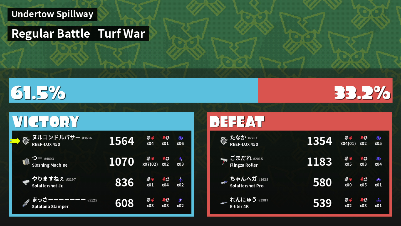 | Mode | Turf War - Regular Battle | ||