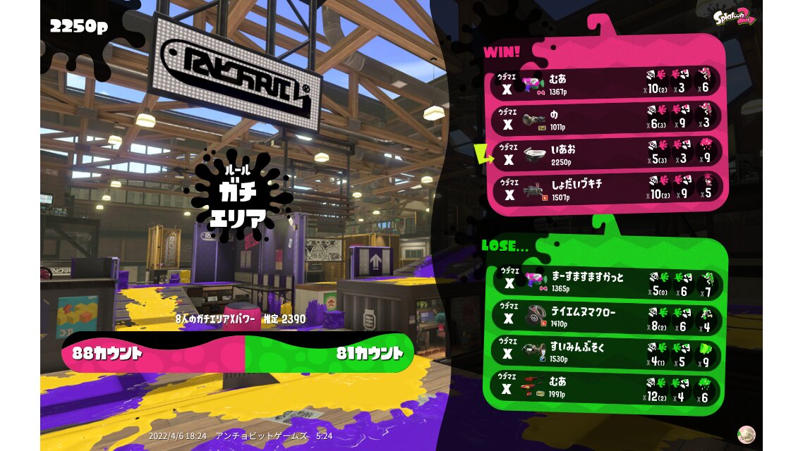 | Mode | Splat Zones - Ranked Battle | ||||||||||||||||||||||||||||||||||||||||||||||
