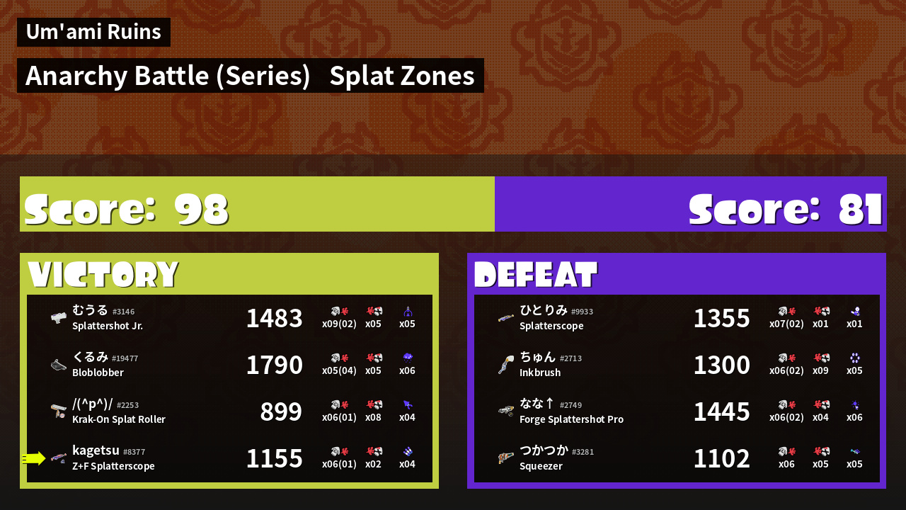 | Mode | Splat Zones - Anarchy Battle (Series) | ||