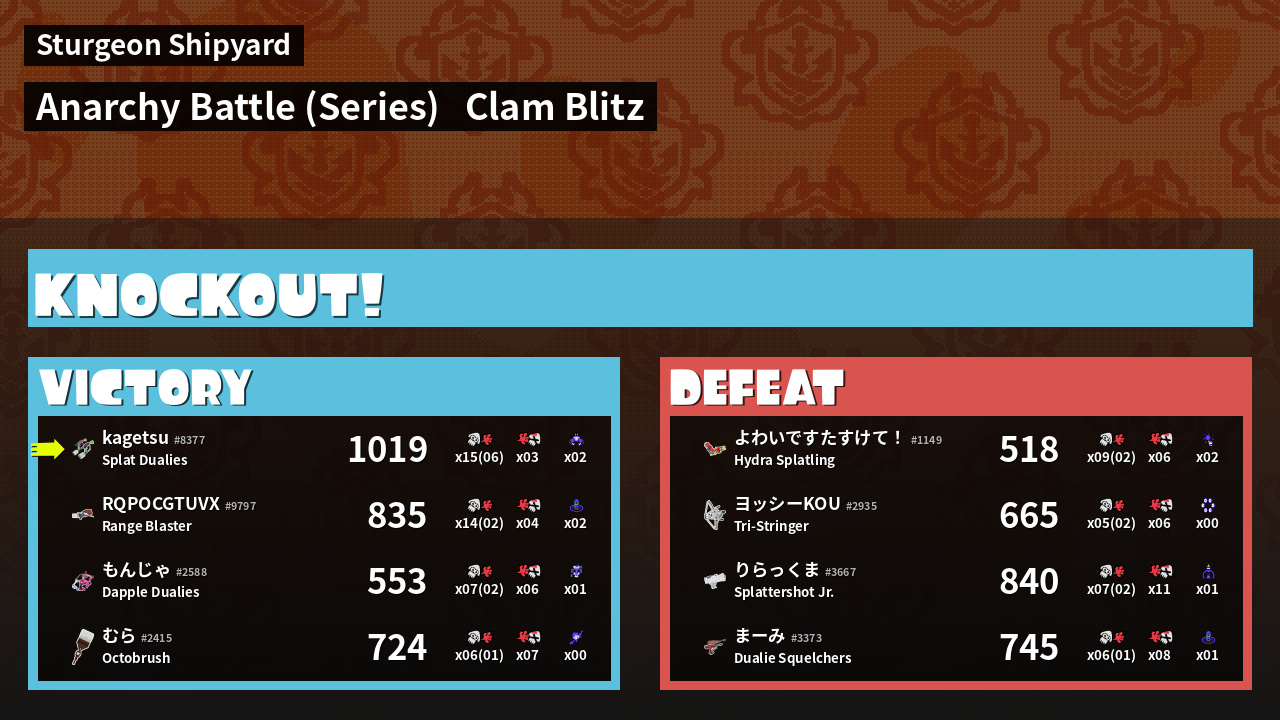 Kills / Deaths | 9 + 6 / 3 > Kill Ratio: 3.00 | ||