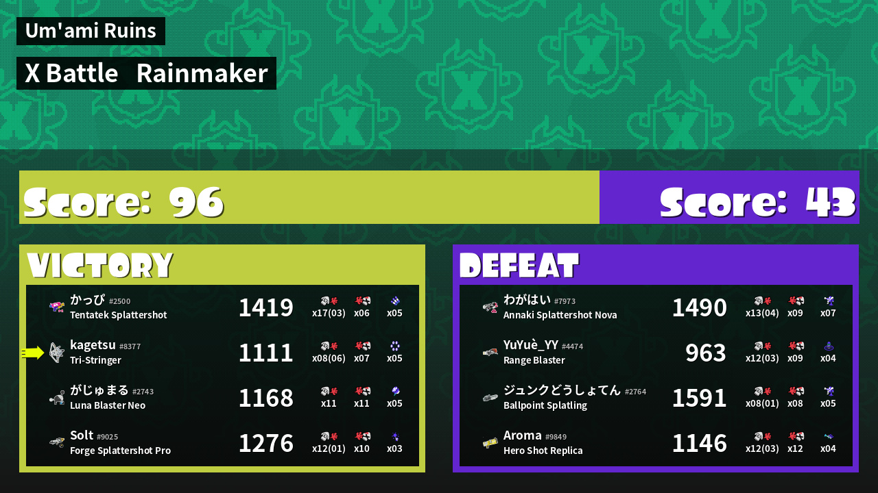| Medals | #1 Super Jump Spot #1 Splat Assister #1 Killer Wail 5.1 User | ||