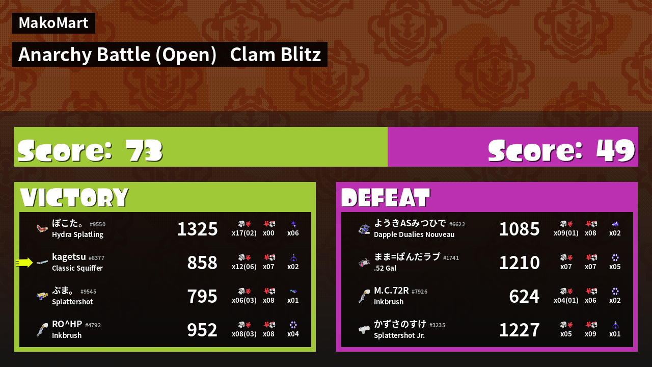 Kills / Deaths | 6 + 6 / 7 < Kill Ratio: 0.86 | ||