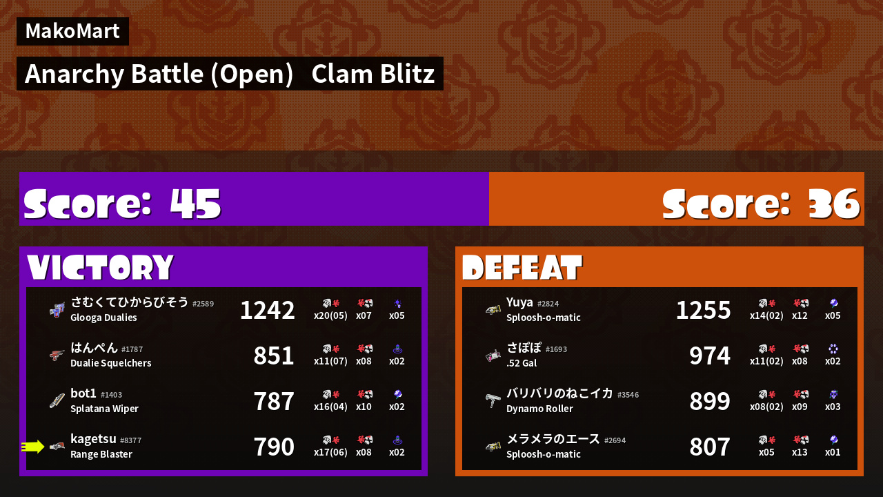 | Mode | Clam Blitz - Anarchy Battle (Open) | ||