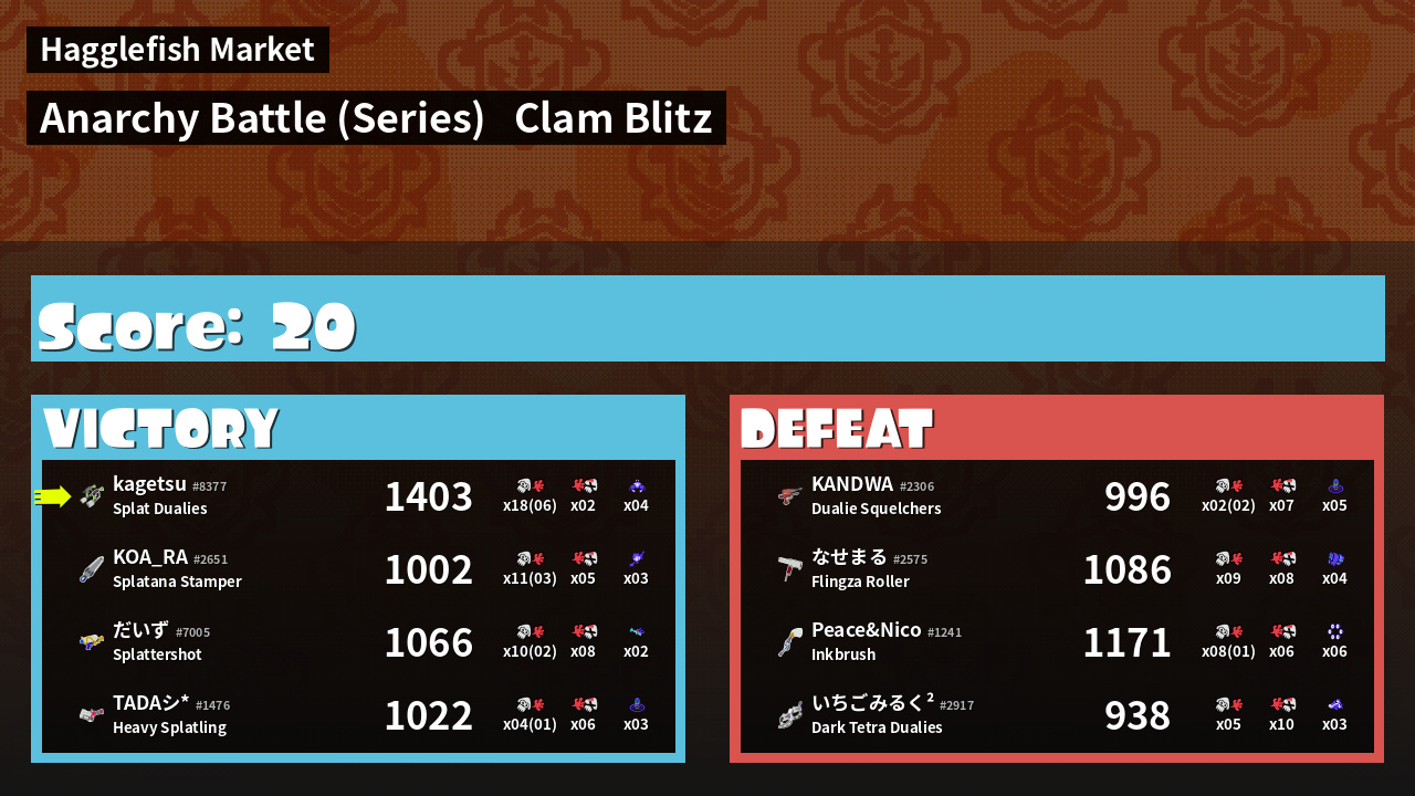 | Mode | Clam Blitz - Anarchy Battle (Series) | ||