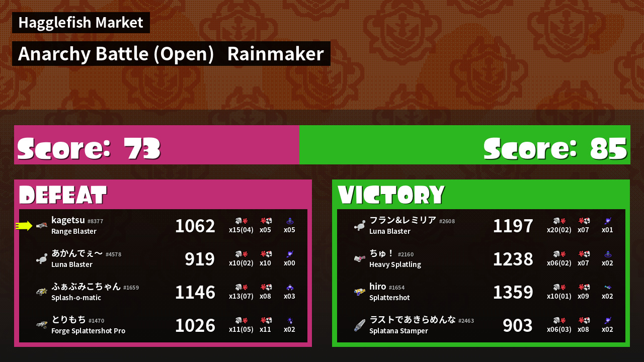 | Mode | Rainmaker - Anarchy Battle (Open) | ||