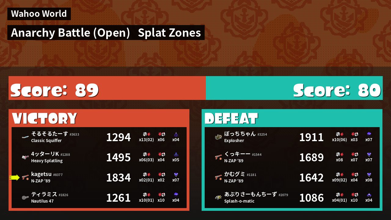 | Mode | Splat Zones - Anarchy Battle (Open) | ||