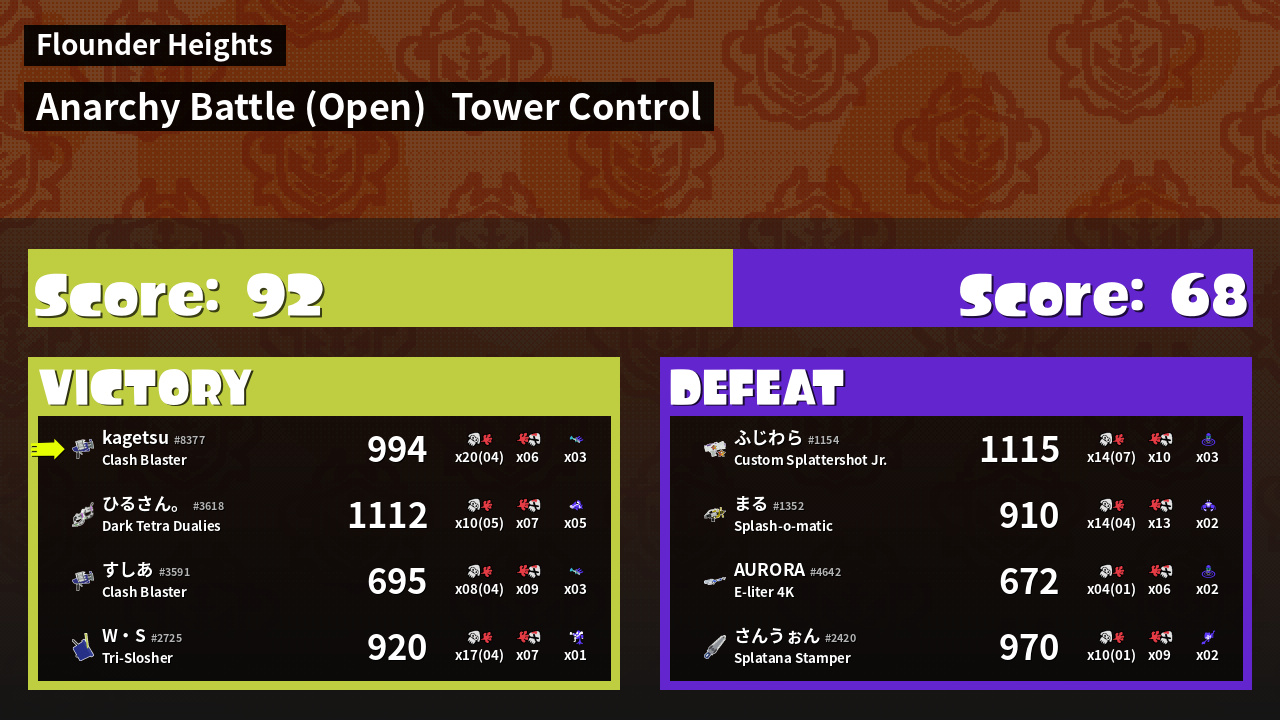 | Mode | Tower Control - Anarchy Battle (Open) | ||