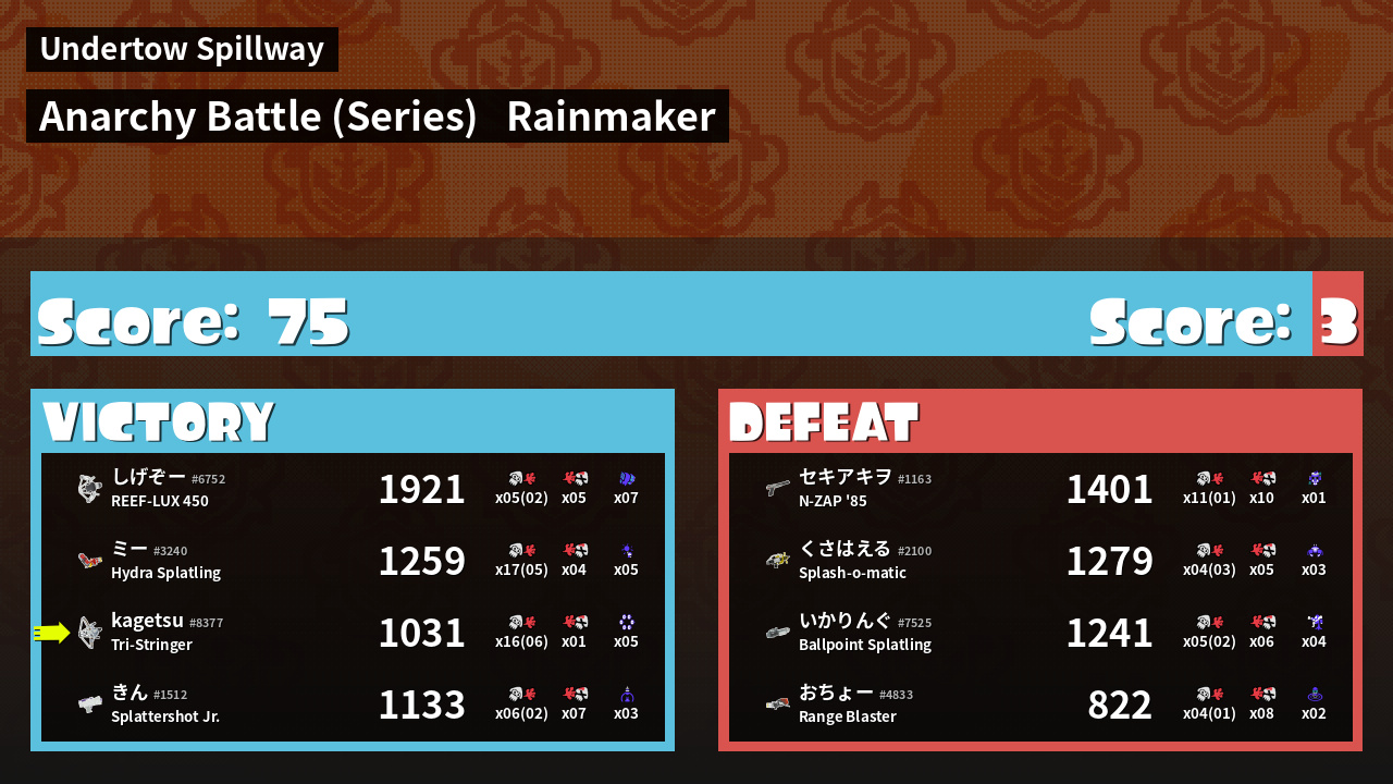 | Medals | #1 Super Jump Spot #1 Splat Assister #1 Rainmaker Stopper | ||