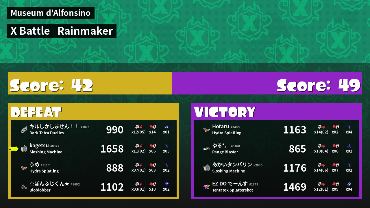Kills / Deaths | 9 + 2 / 6 > Kill Ratio: 1.50 | ||