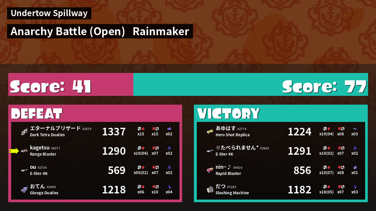 | Medals |   #1 Popular Target  #1 Splat Assister  #1 Checkpoint Breaker | ||