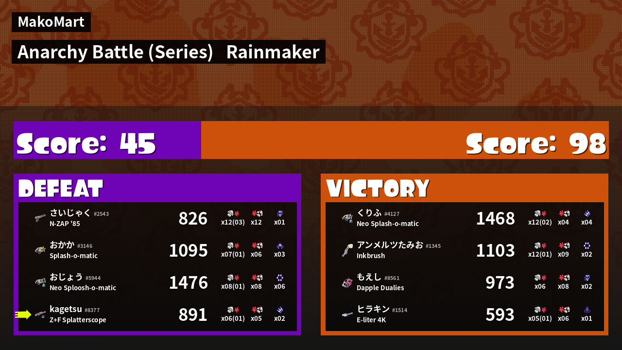 | Mode | Rainmaker - Anarchy Battle (Series) | ||