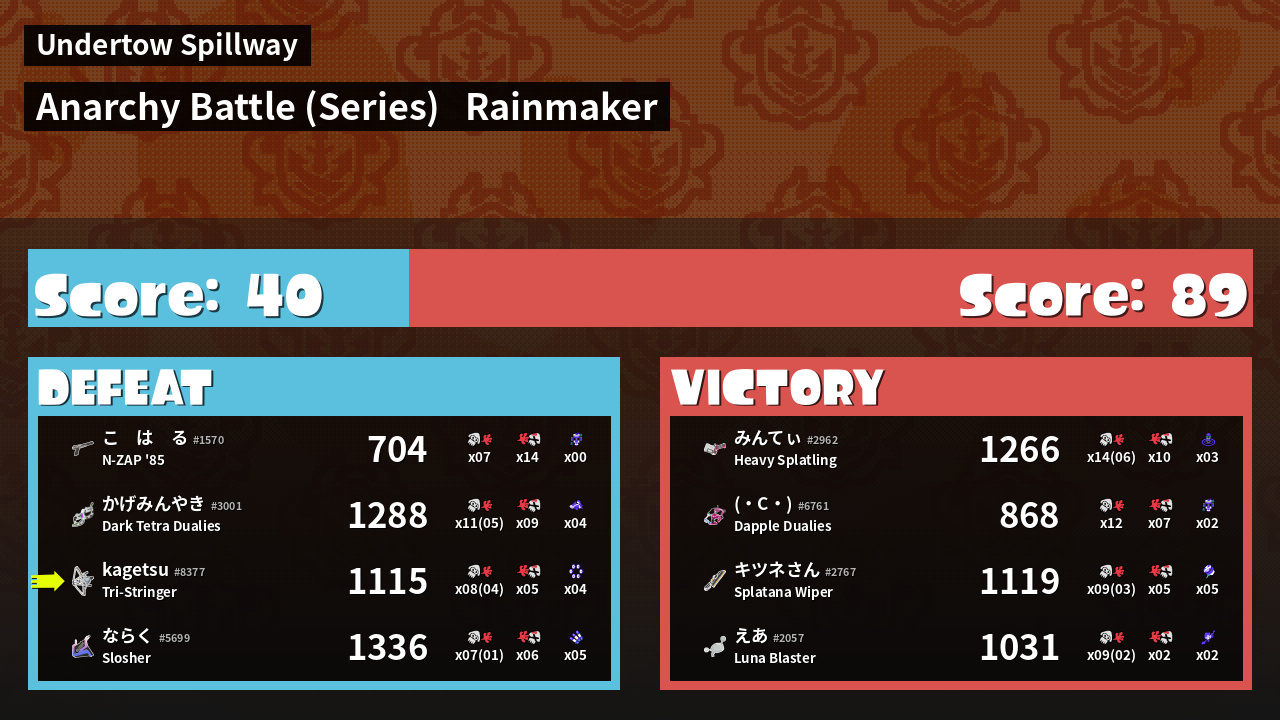 | Mode |    Rainmaker -   Anarchy Battle (Series) | ||