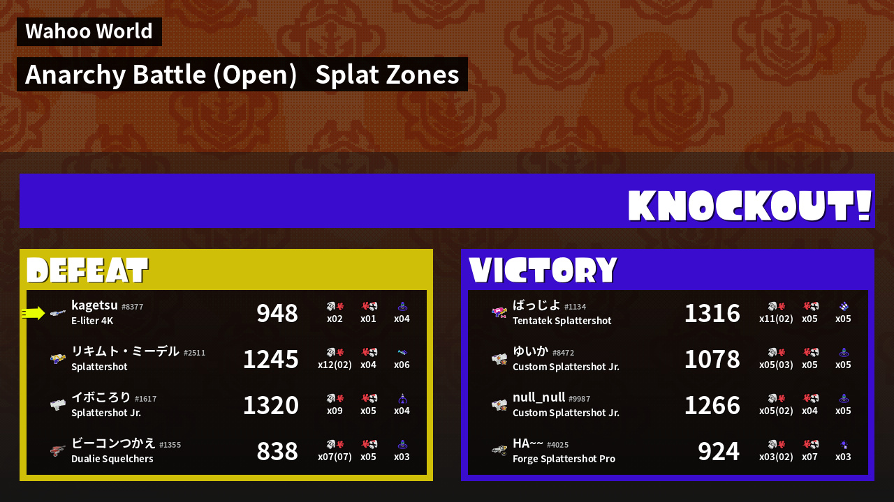 | Mode | Splat Zones - Anarchy Battle (Open) | ||