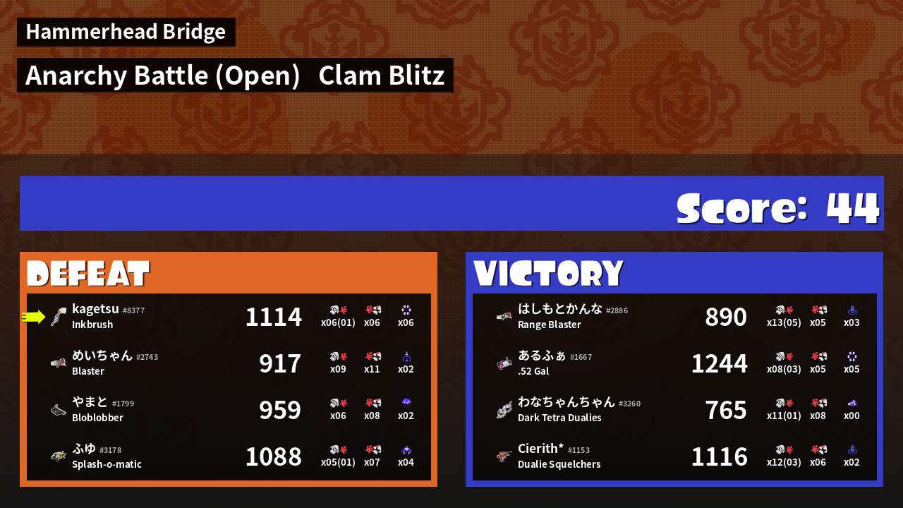 | Mode | Clam Blitz - Anarchy Battle (Open) | ||