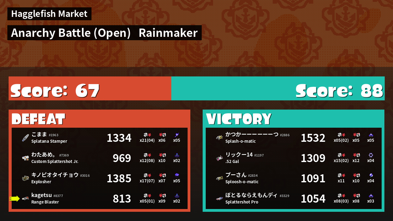 | Mode | Rainmaker - Anarchy Battle (Open) | ||