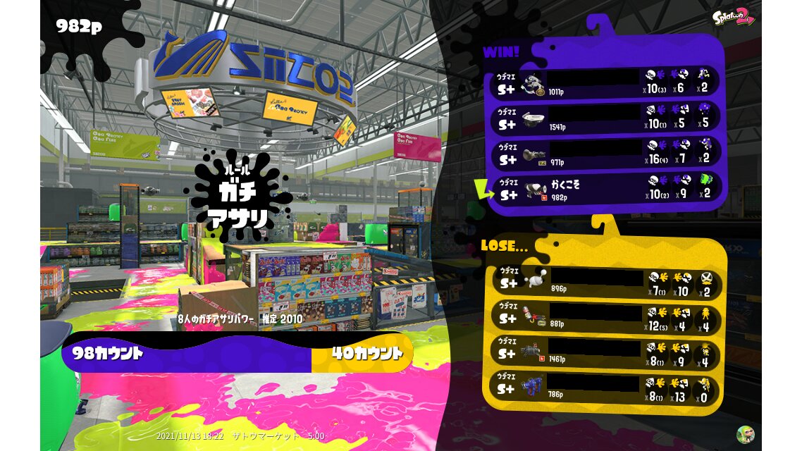 | SplatNet Battle # | 21,053 | |||||||||||||||||||||||||||||||||||||
