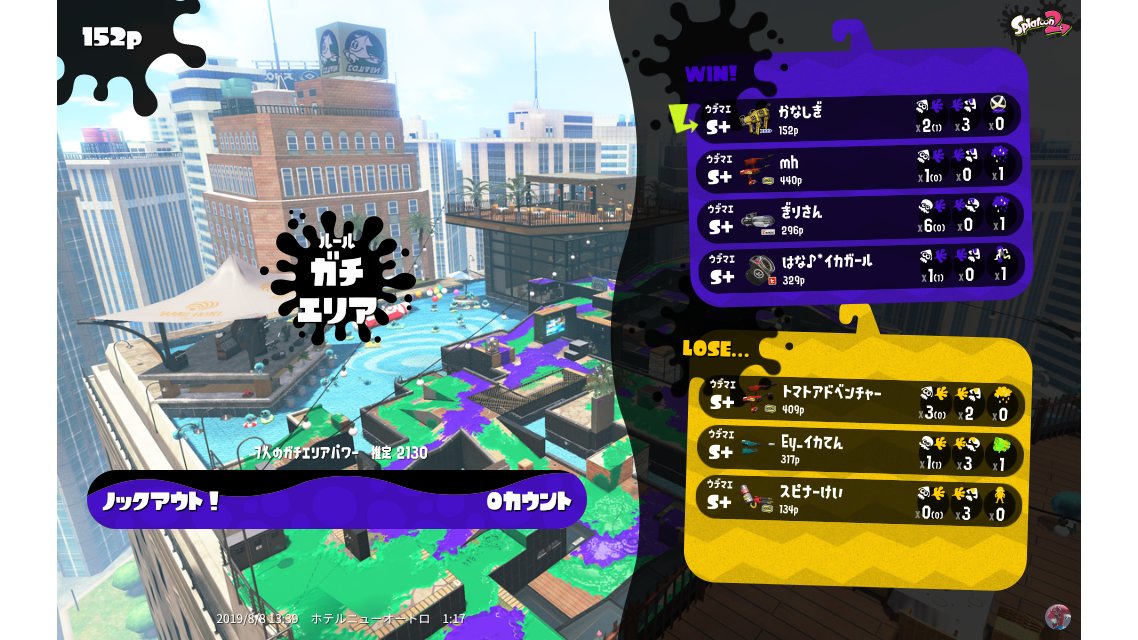 | Mode | Splat Zones - Ranked Battle | ||||||||||||||||||||||||||||||||||||||||