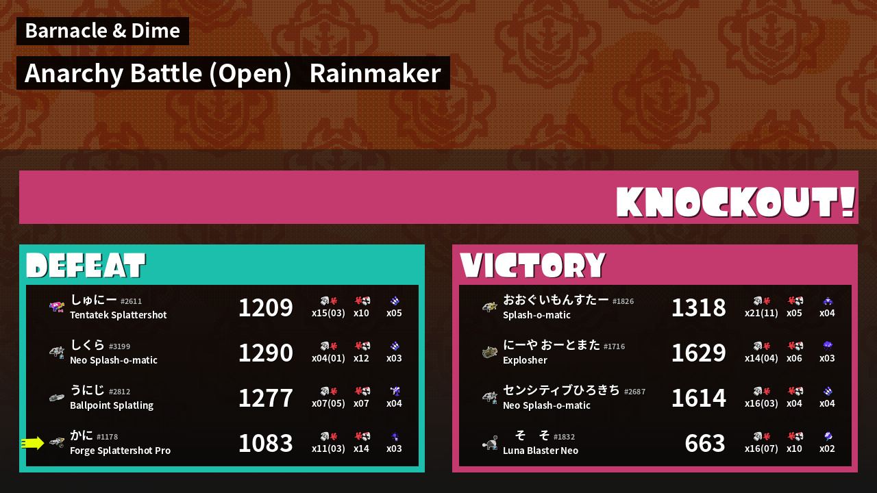| Mode | Rainmaker - Anarchy Battle (Open) | ||