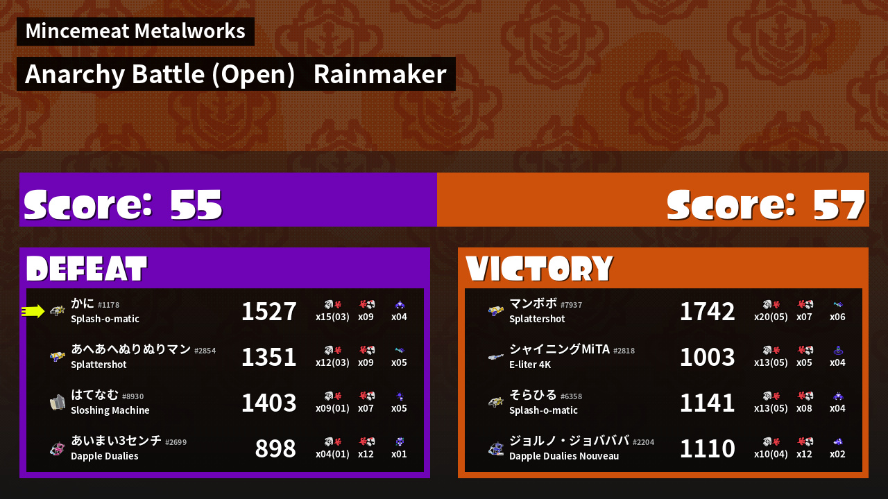 | Mode | Rainmaker - Anarchy Battle (Open) | ||