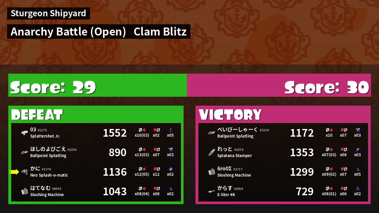 | Mode | Clam Blitz - Anarchy Battle (Open) | ||