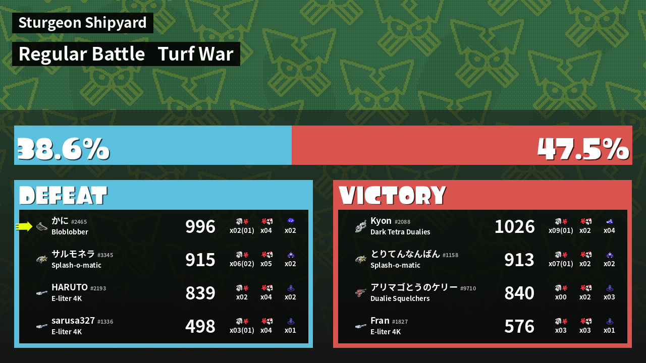 | Medals | #1 Turf Inker #1 Damage Taker #1 Ink Storm User | ||