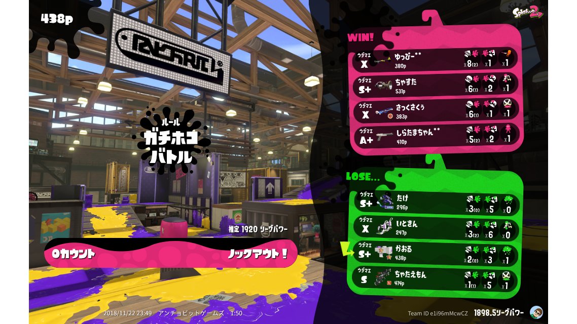 | Name | Weapon | Level | Rank | Inked | k+a/sp | k/d |